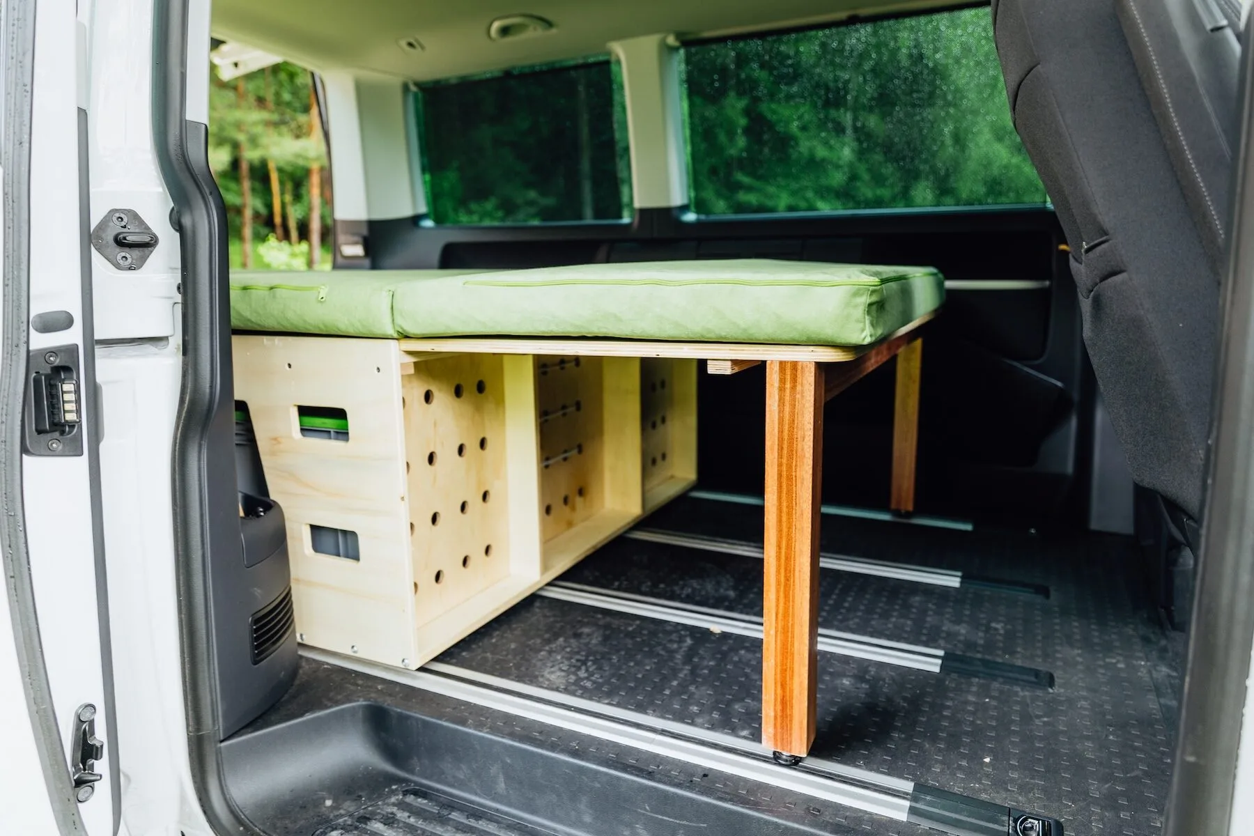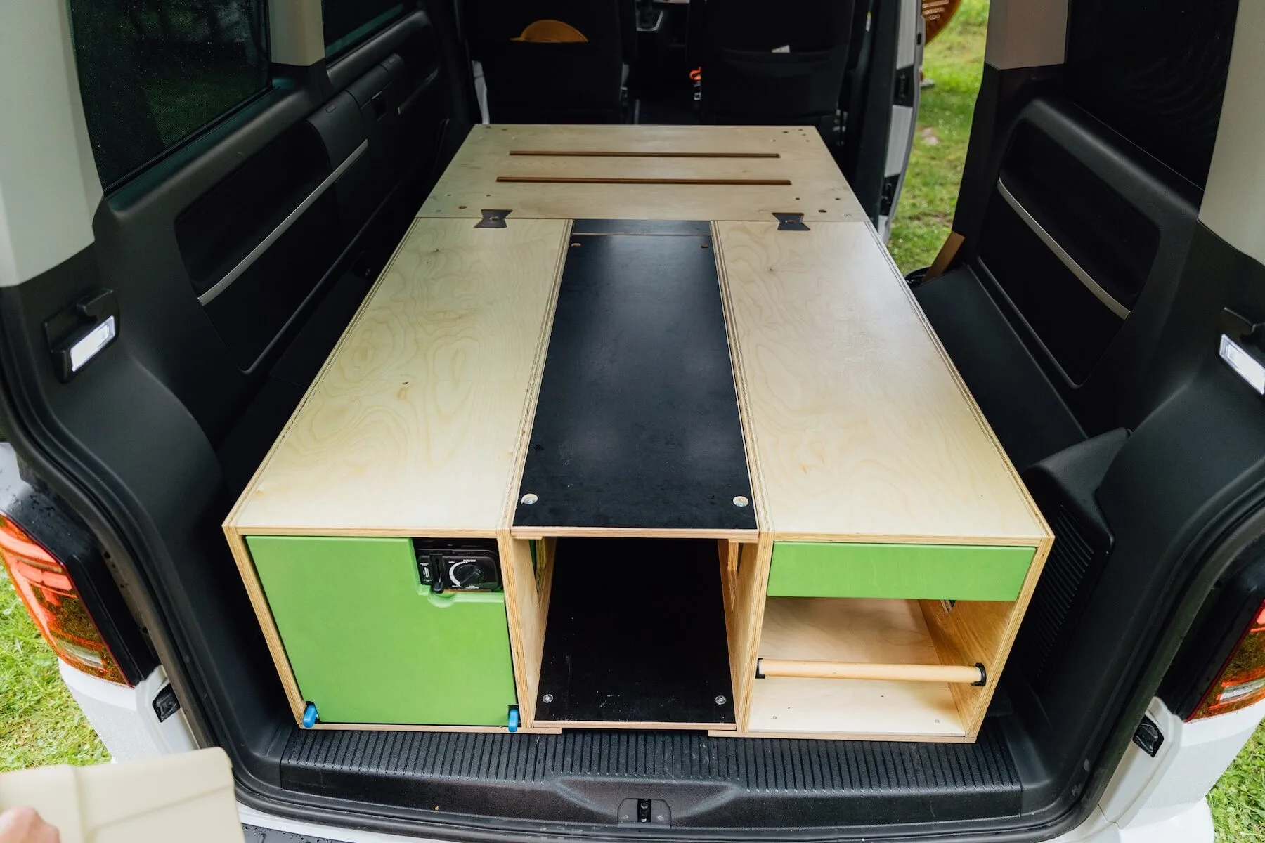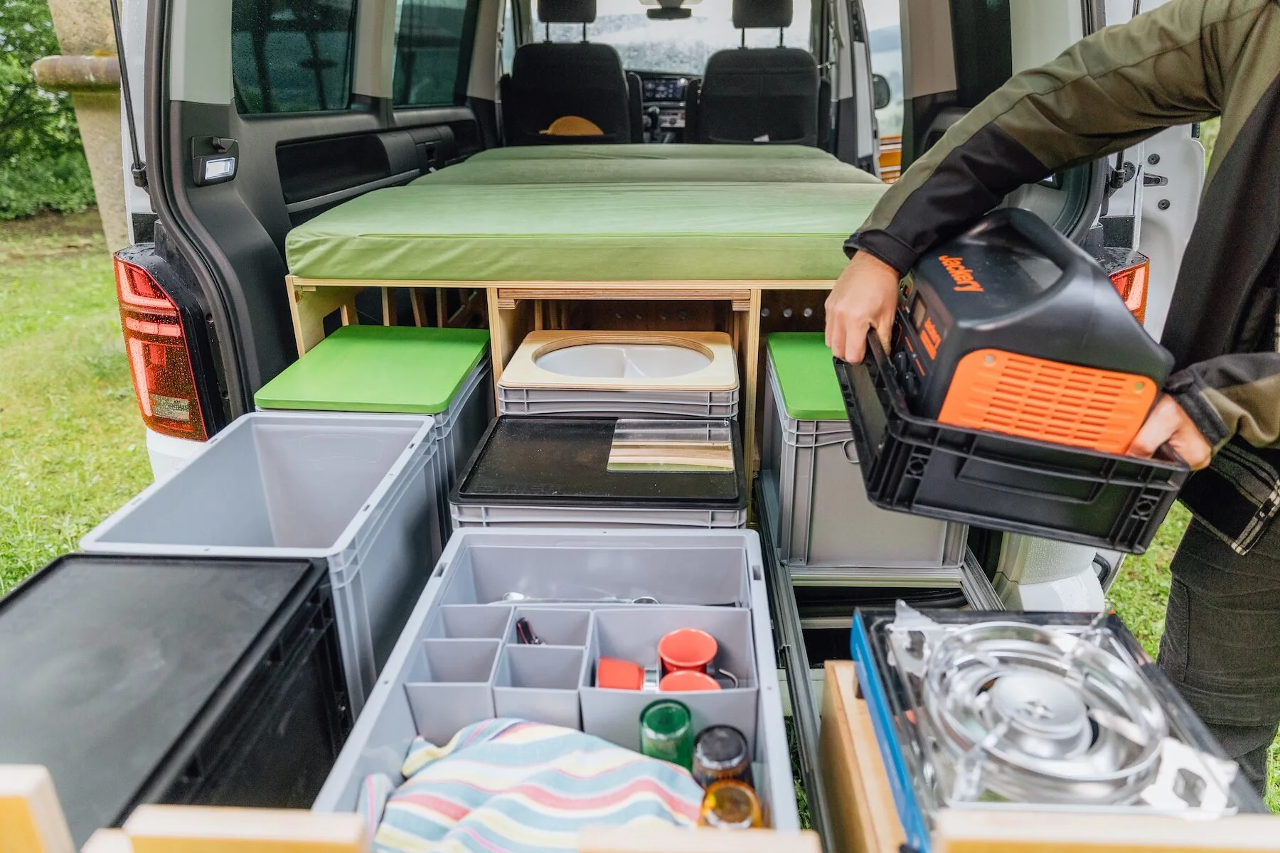 Die Rhöner Van.Camp.Box ist ein durchdachtes Campingmodul für Hochdachkombis, Transporter und Vans. ✔️ Vollauszug-Schublade ✔️ Viel Stauraum ✔️ Liegefläche auf 3-teiliger Matratze ✔️ Modularer Aufbau ✔️ Matratze & Gaskocher inklusive